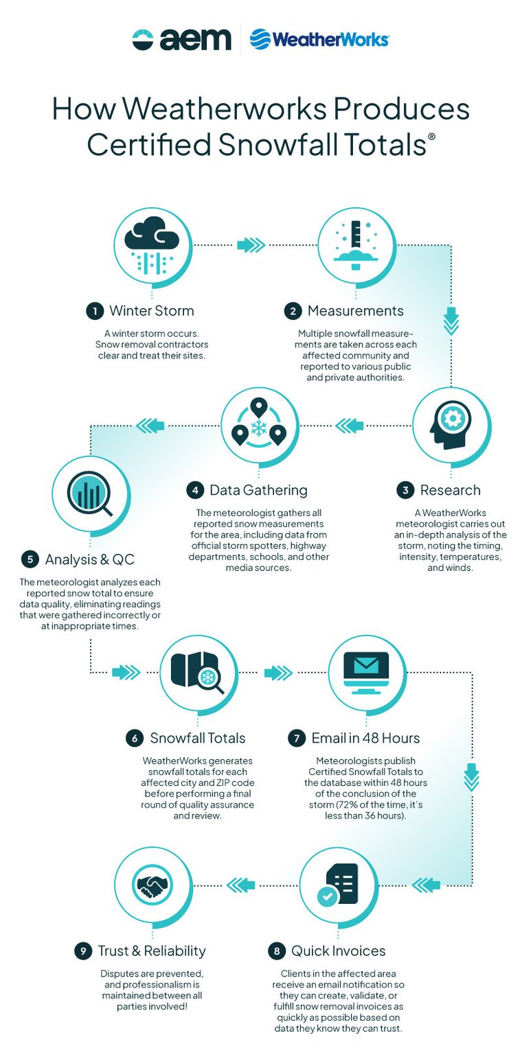 Last month, we were proud to announce AEM’s acquisition of WeatherWorks, a specialized meteorological services provider for nearly four decades. As the latest addition to the AEM family of brands, WeatherWorks will help our customers in the U.S. and Canada increase their resilience through improved forecasting, proprietary data insights, and trustworthy reporting, especially in snow and ice markets. As we continue to integrate WeatherWorks’ team and technology into our portfolio, we wanted to take this opportunity to highlight why we’re so excited to have them on board.
